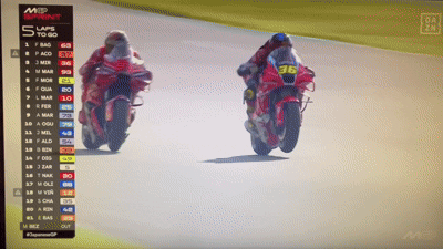 💭 Te puede recordar al mítico encontronazo Rossi vs Gibernau de 2005, o cuando los pilotos más corpulentos utilizaban su cuerpo (en lugar de su técnica) para adelantar a Pedrosa.