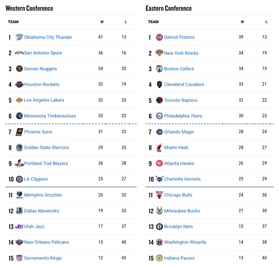 🛞 Detroit Pistons (38-13). Defensa élite y momento brutal: 10 victorias en 13 partidos, forzando pérdidas y castigando desde ahí. Si esto sigue así, cuesta no verles como favoritos del Este.