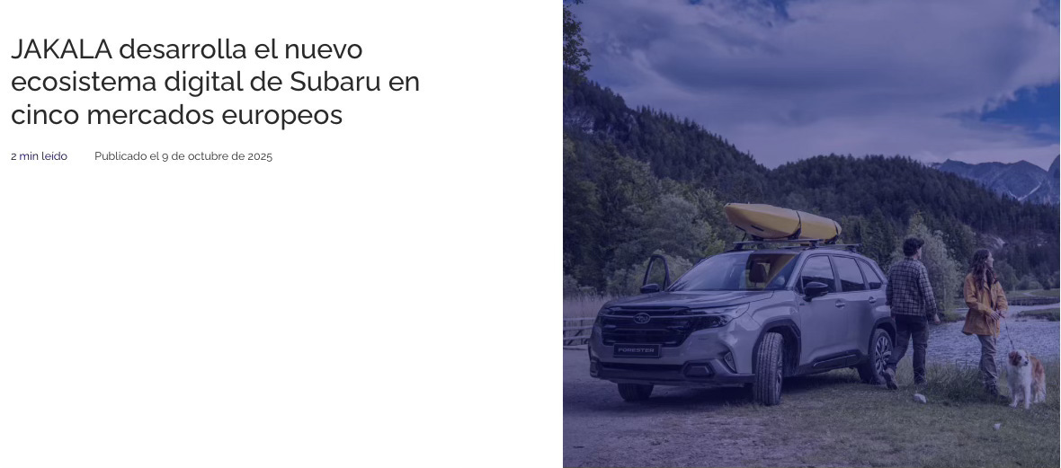 🛞Subaru ha confiado en JAKALA para rediseñar y desarrollar su nueva plataforma digital en cinco mercados clave: Italia, Croacia, Eslovenia, Bulgaria y Rumanía.