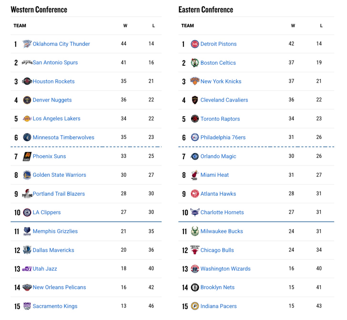 🛞 Detroit Pistons: Aunque tienen el mejor récord de la liga, generan dudas. Juegan siempre al máximo nivel de intensidad y surge la pregunta: ¿tienen una marcha extra para playoffs o ya están al límite? Podría ser un caso tipo equipos de Thibodeau que no guardan energía para más adelante.