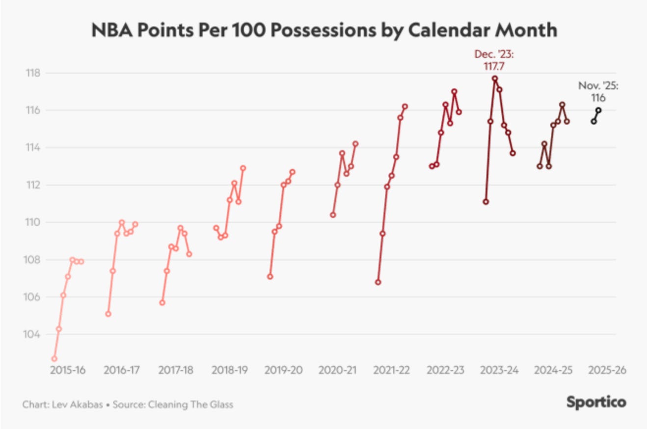 🇺🇸 NBA. Fíjate como evoluciona la capacidad anotadora durante la regular season. Mira como empieza este año. ¿Se estrecha el margen de mejora? o va a ser histórica?