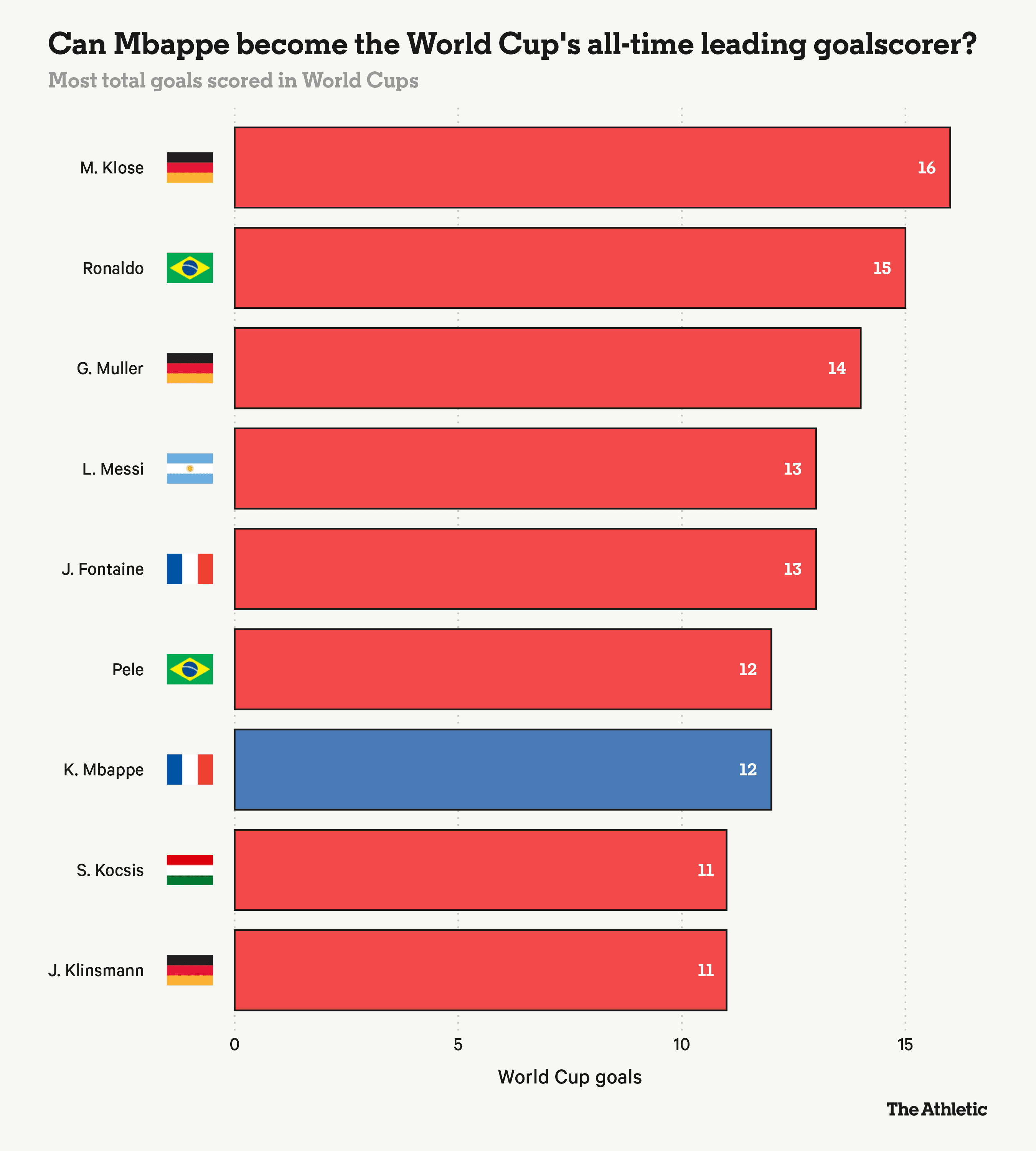 🔝 Ojito a lo fácil que lo tiene Mbappe para hacer historia. Con 26 años, la teoría dice que al menos tiene carrera para jugar dos mundiales más; si es como Messi, entonces tres más.