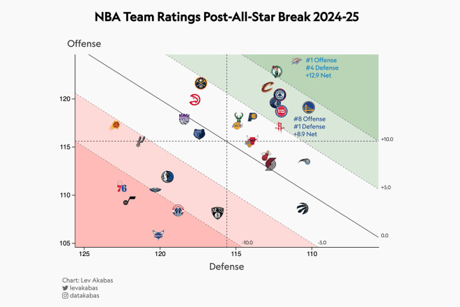 Los equipos de la NBA de playoffs por sus ratings ofensivos y defensivos: