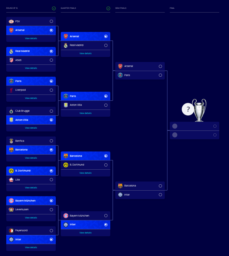 Esta semana empiezan las semis de la Champions, te recuerdo el cuadro
