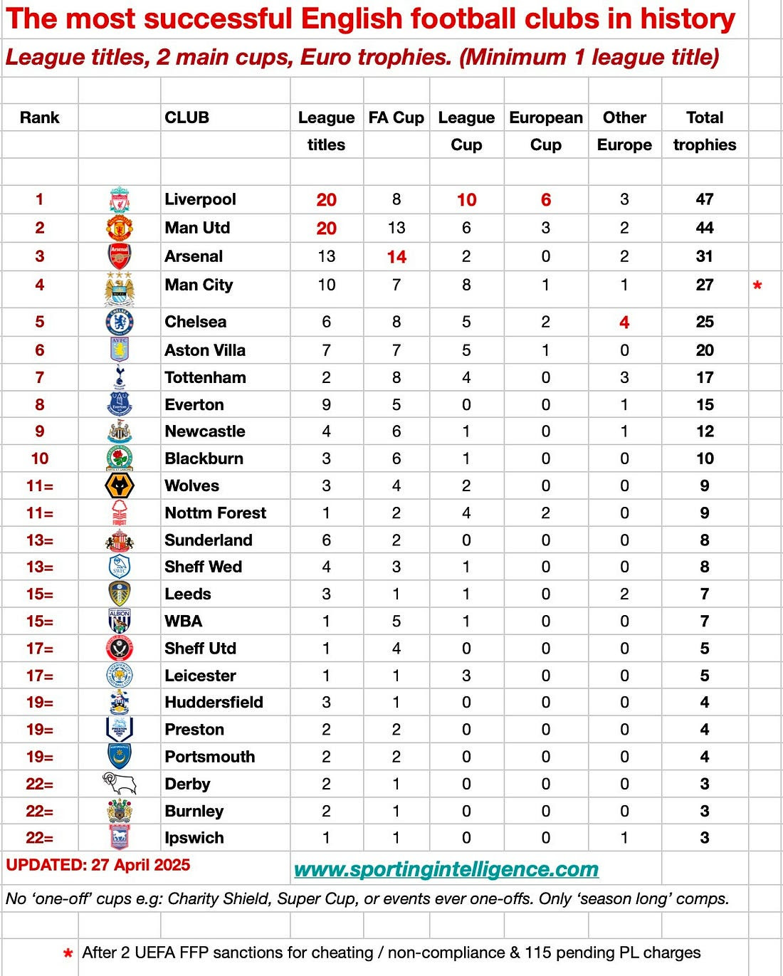 🔴 Título 20 para Liverpool: Liverpool iguala los 20 títulos de liga del Manchester United. Recuerda i) Klopp anunció su salida con tiempo, permitiendo una transición suave (lo que es extraño en el fútbol), su sucesor, Slot, pudo preparar su llegada con asesoramiento directo; ii) Liverpool es propiedad de Fenway Sports Group, la empresa matriz estadounidense de los Red Sox y los Penguins, entre otras propiedades deportivas.