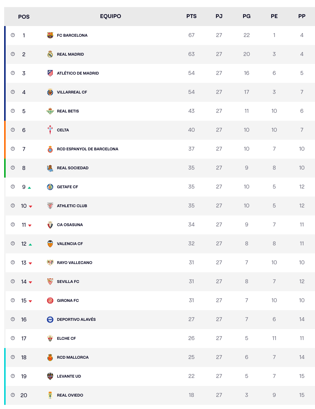 🇪🇸 LaLiga. El Espanyol empata 1-1 con el Real Oviedo en el último partido de la 27ª jornada. Así va la clasificación.