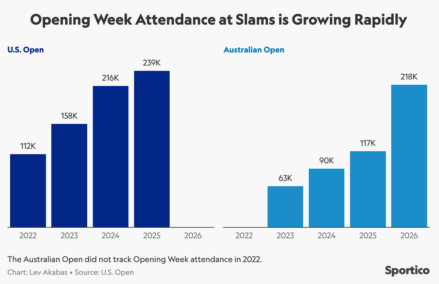🎾🔝 Opening Week. La asistencia a la “opening week” de cada gran slam se incremente cada año: han conseguido que mole.
