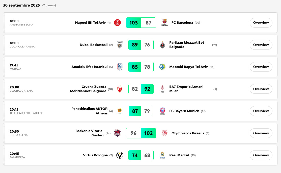 🇪🇺 Euroleague. Temporada regular - Jornada 1
