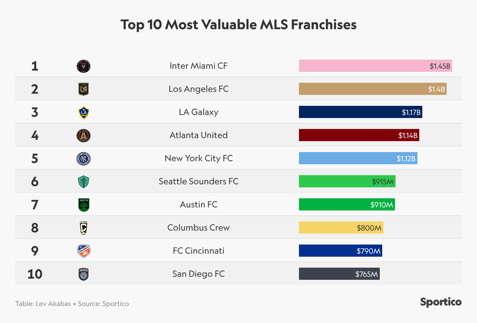 🇺🇸 Los equipos (franquicias) de MLS mejor valorados. Hoy te dejo el gráfico de los datos que te compartía el otro día: