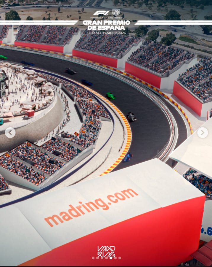 🏎️ Madring publica nuevas imágenes del futuro circuito de Madrid. El trazado que acogerá el Gran Premio de España mostró renders de las curvas en construcción de su nueva sede madrileña.