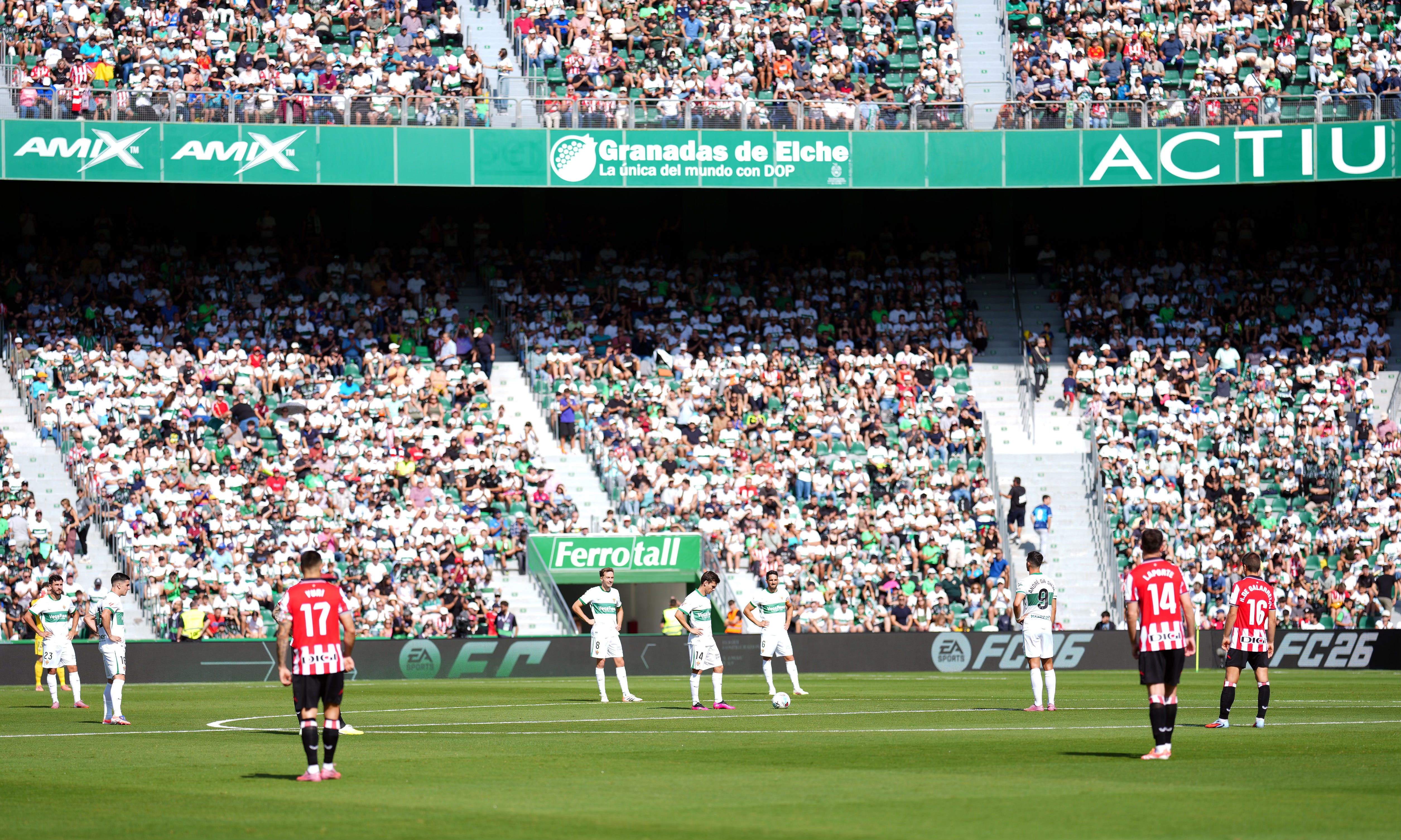 Solo en Elche-Athletic se mostró todo el plano abierto, con los 22 futbolistas detenidos.