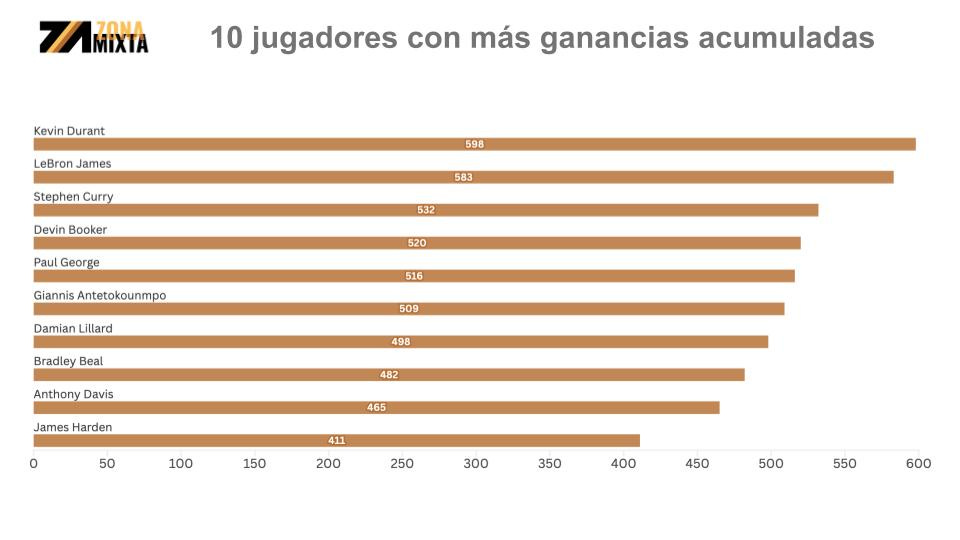 ⛹️💰 Kevin Durant ya es el jugador mejor pagado en la historia de la NBA. Con su extensión de 90M$ con los Rockets. Supera a LeBron en ingresos totales: 598,2M$ vs 583,9M$.