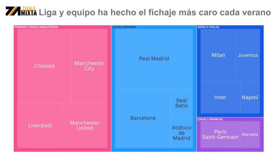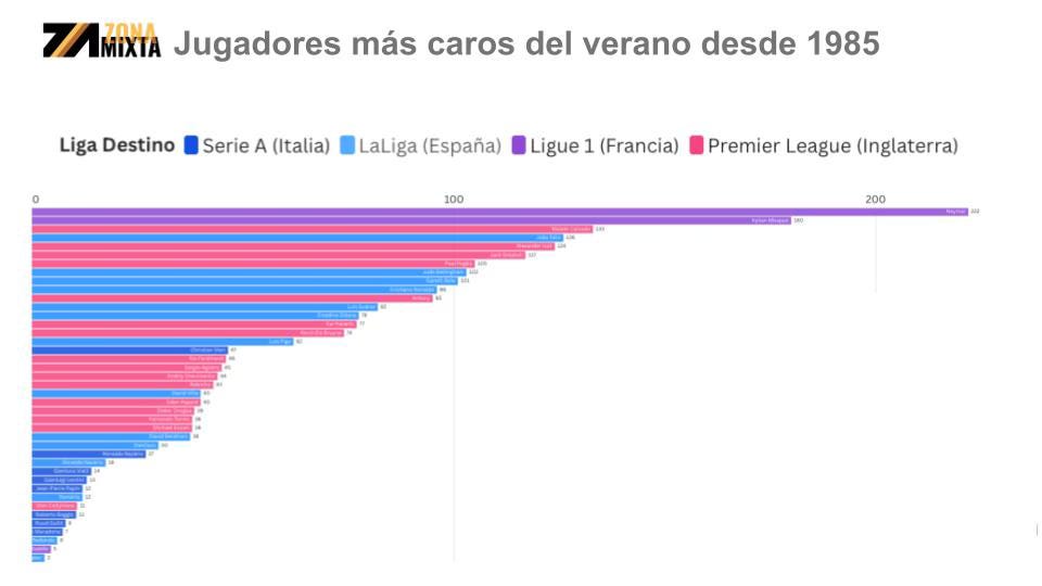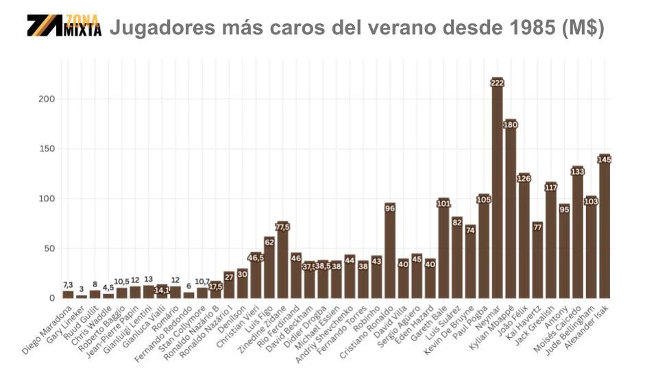 Te dejo un gráfico que muestra el fichaje más caro del verano desde 1985