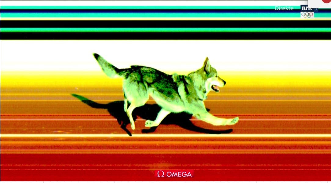 ¡Y tuvo su momento foto finish al pasar por meta! (Omega, dando palmas con las orejas por el momento viral).